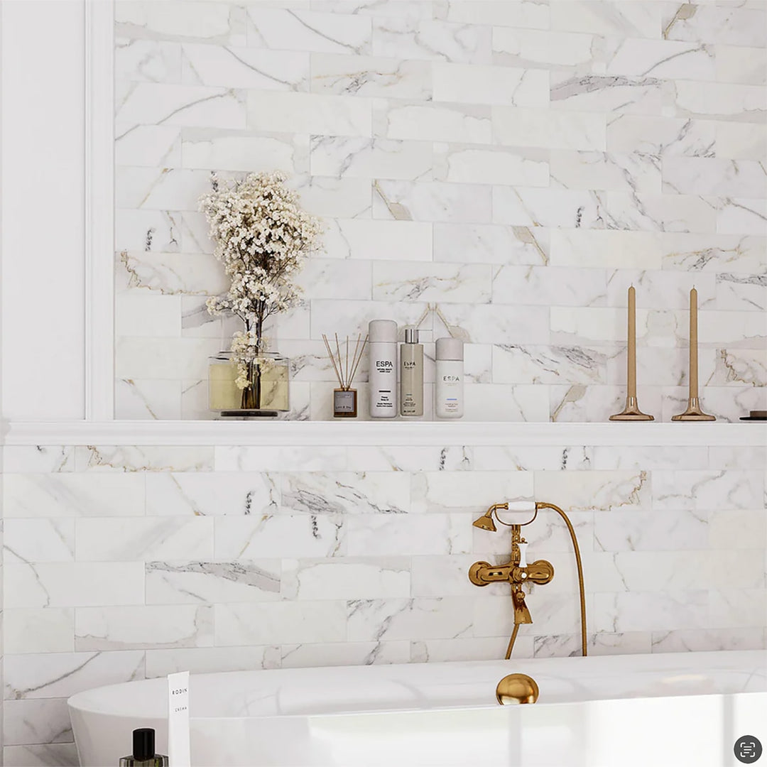 Transform your walls with the luxurious look of Calacatta Gold marble. The polished finish enhances the marble's natural beauty, creating a statement piece for your space.