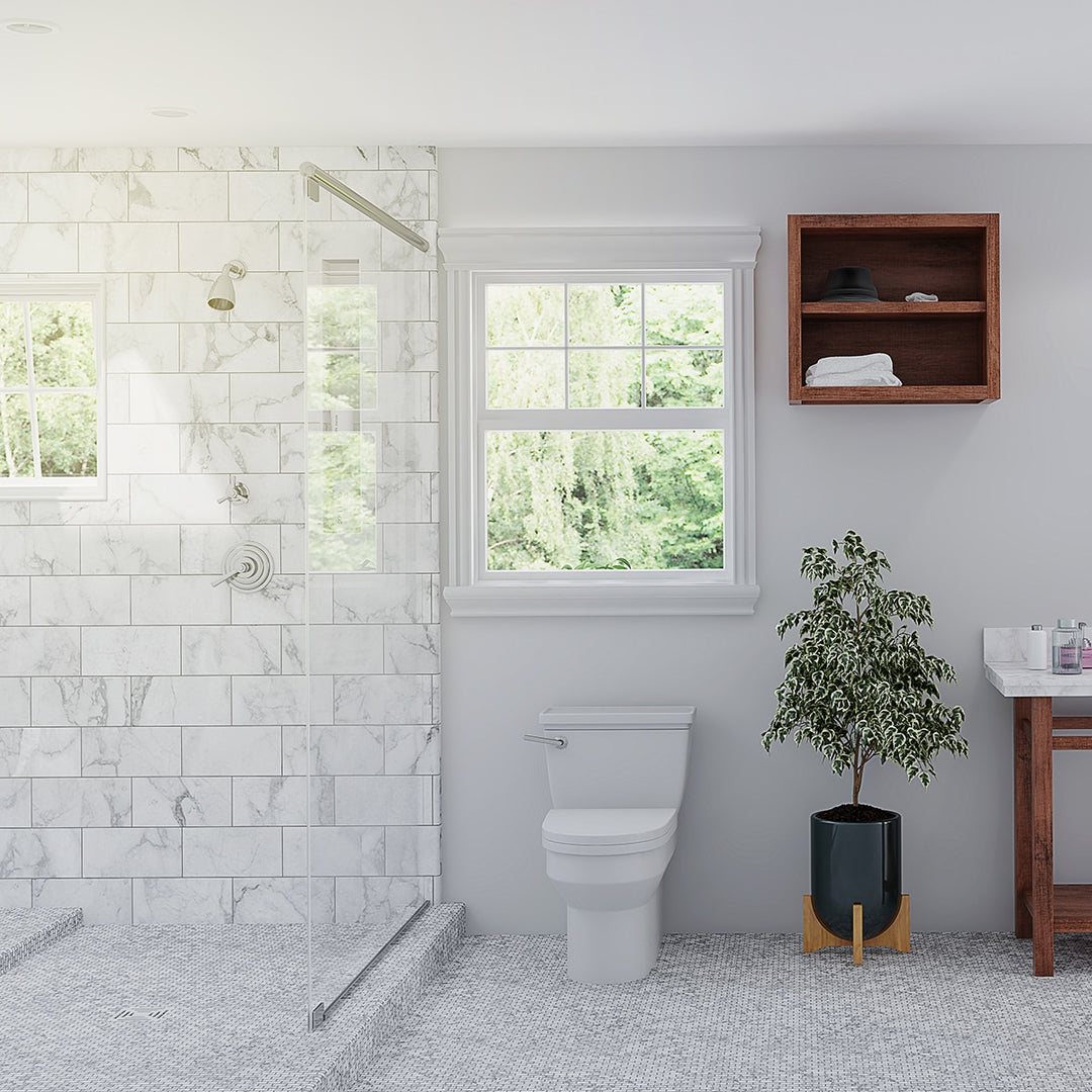 Achieve a sleek and modern look with Statuary White marble. The honed finish adds a touch of sophistication to your walls, while the large format tile creates a sense of spaciousness in any room.